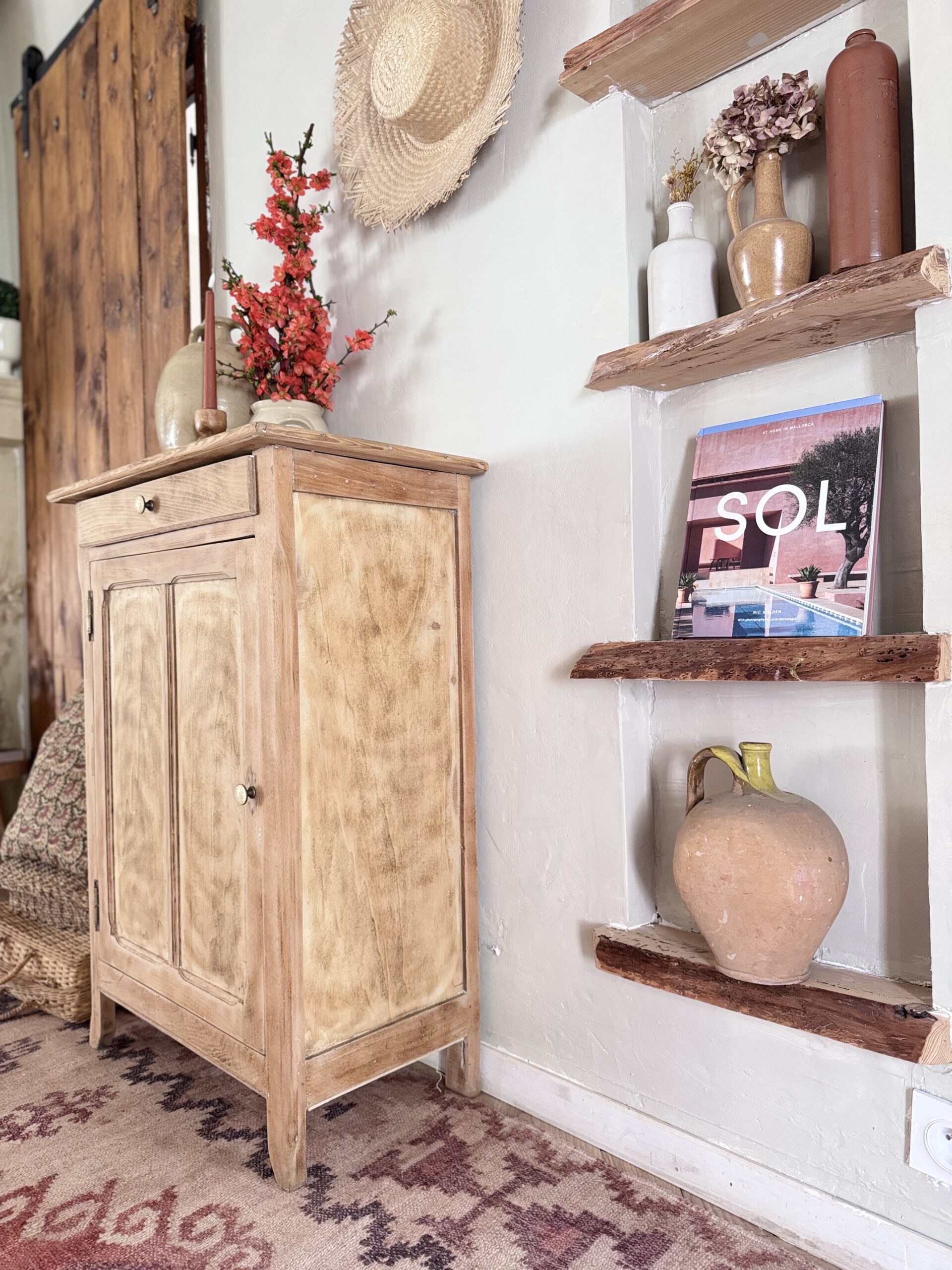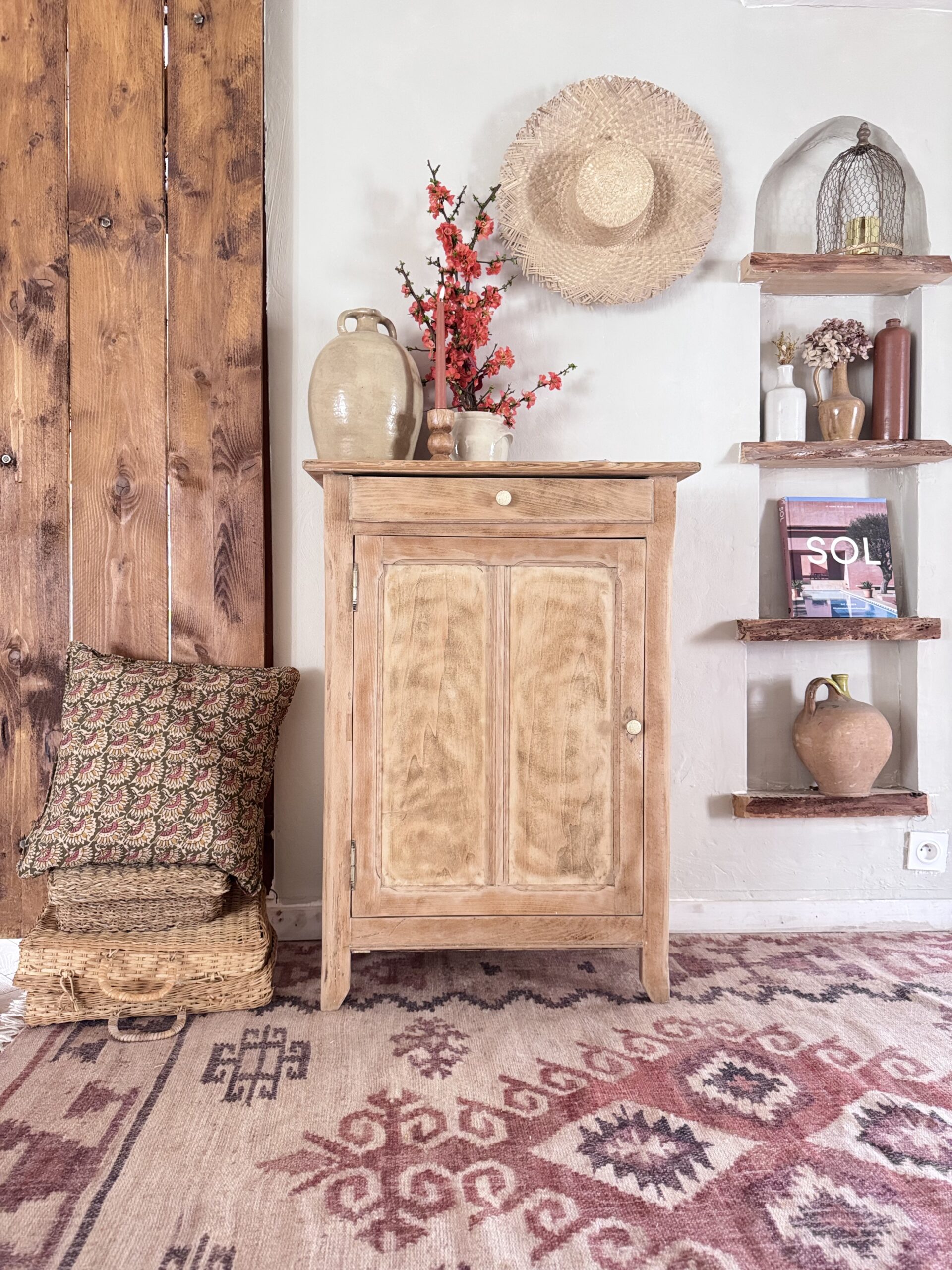 Entièrement restauré à l’atelier poncé, traité et ciré pour révéler toute sa beauté. Deux nouvelle poignées effet laiton marbré blanc ont été ajoutées pour lui donner encore plus de cachet.
