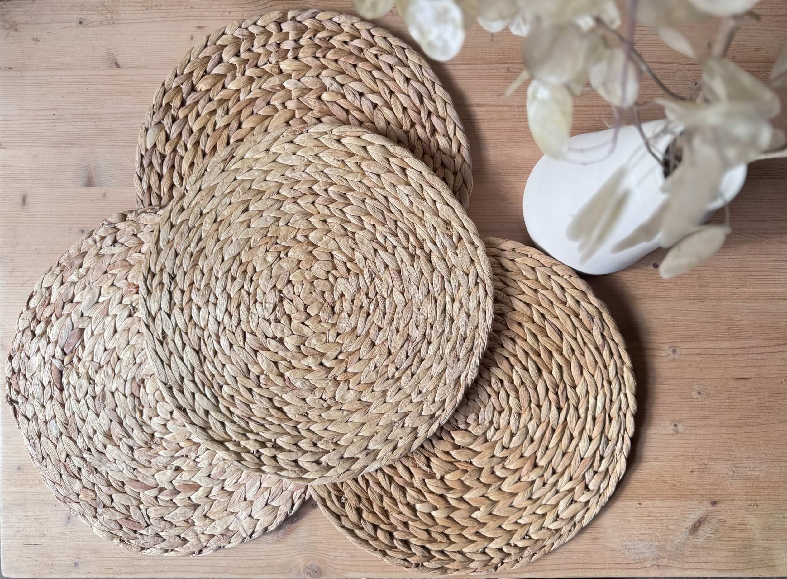 Apportez une touche naturelle et chaleureuse à votre table avec ce joli lot de sets ronds tressés en jonc.