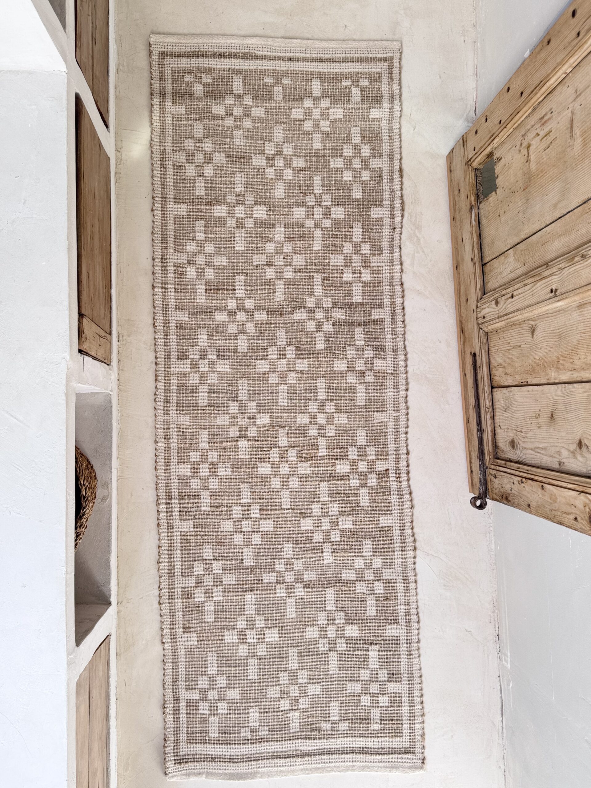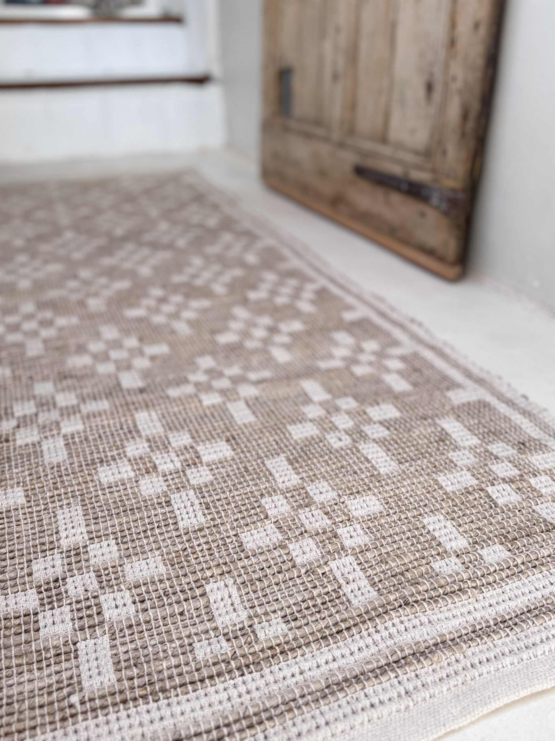 Grand tapis de couleur en jute et coton réversible couleur beige/blanc avec ses jolis motifs ethniques pour apporter du caractère à votre intérieur.
