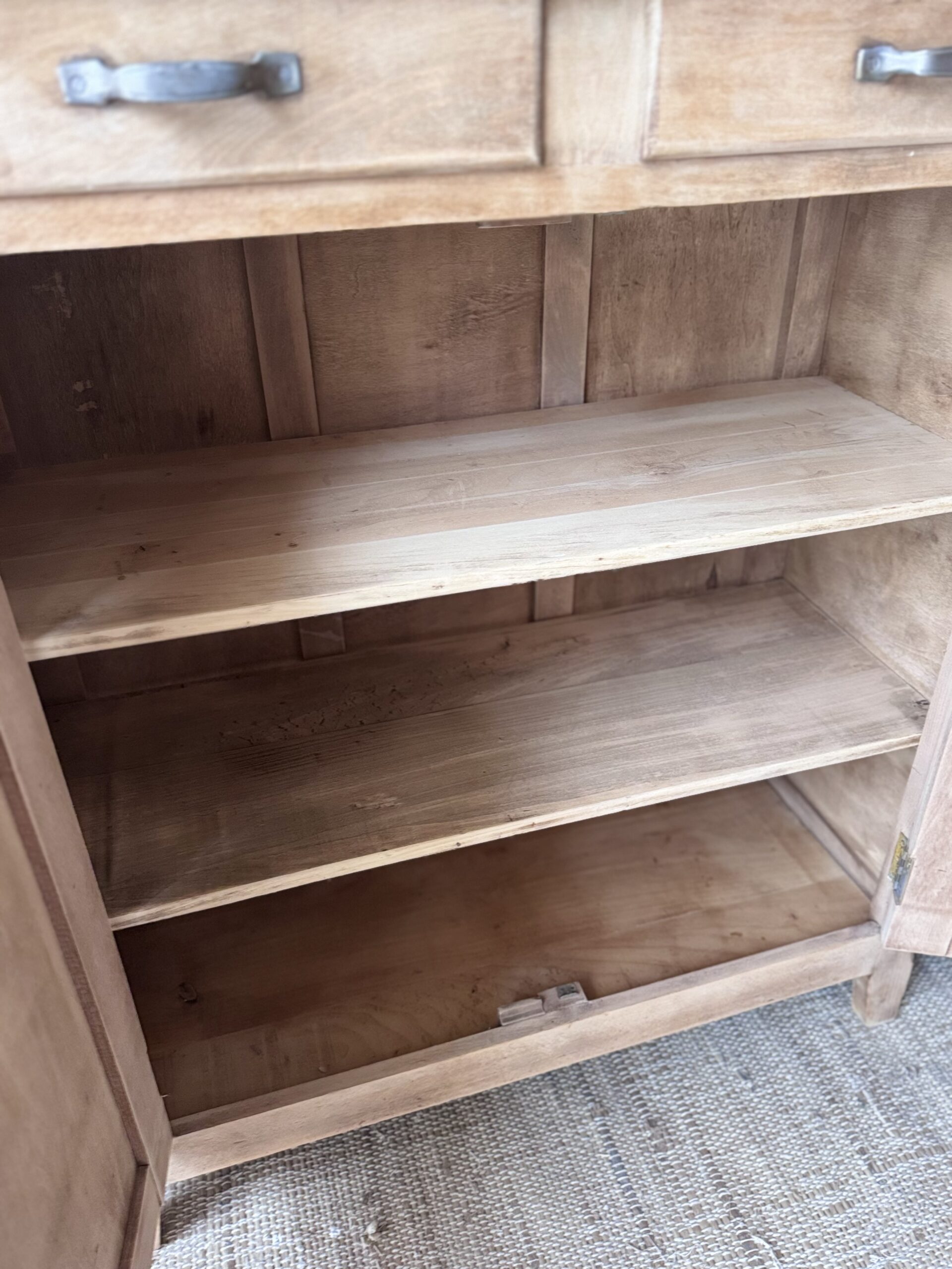 Un bel espace de rangement avec deux tiroirs et ses deux étagères intérieur.