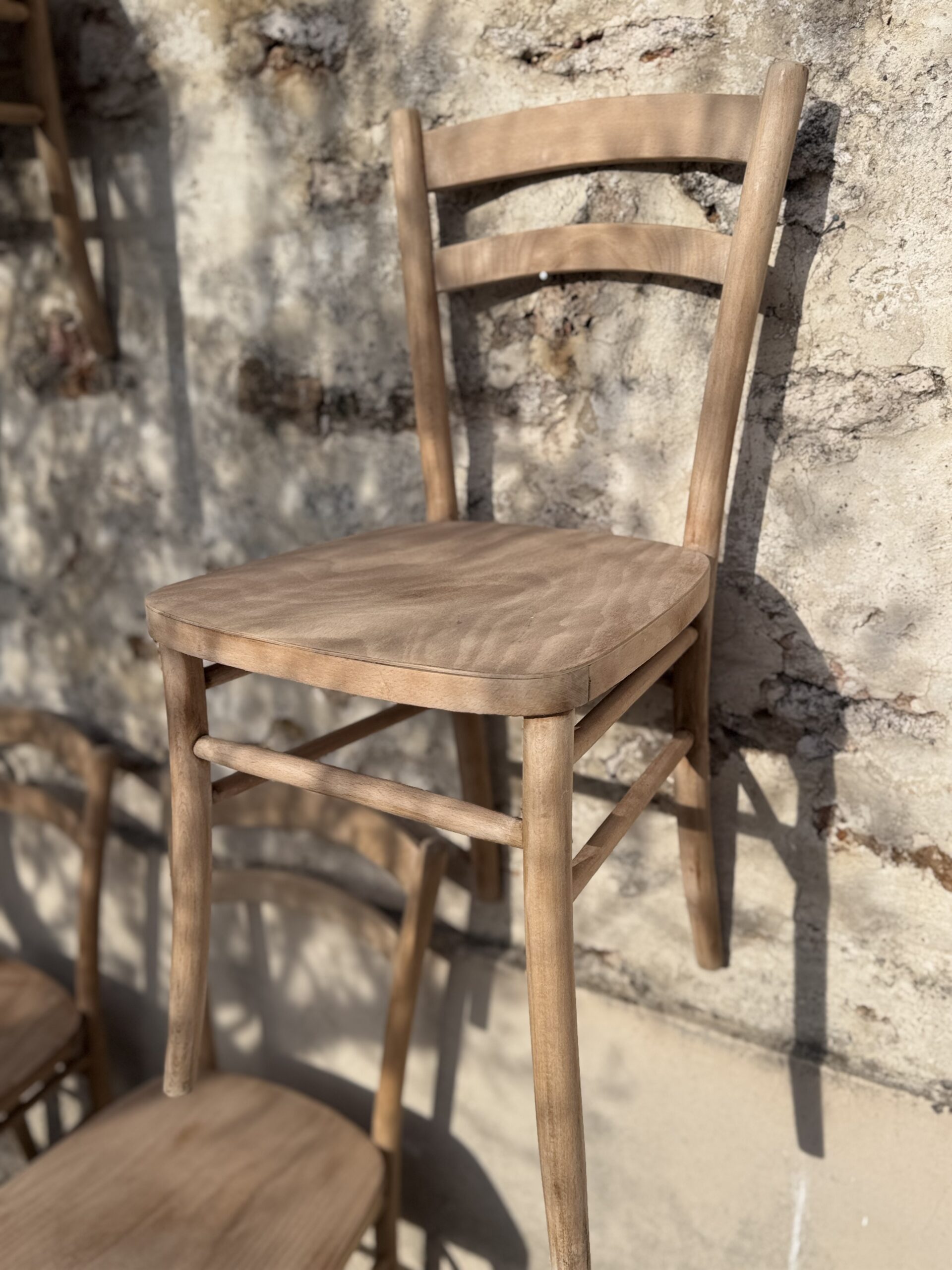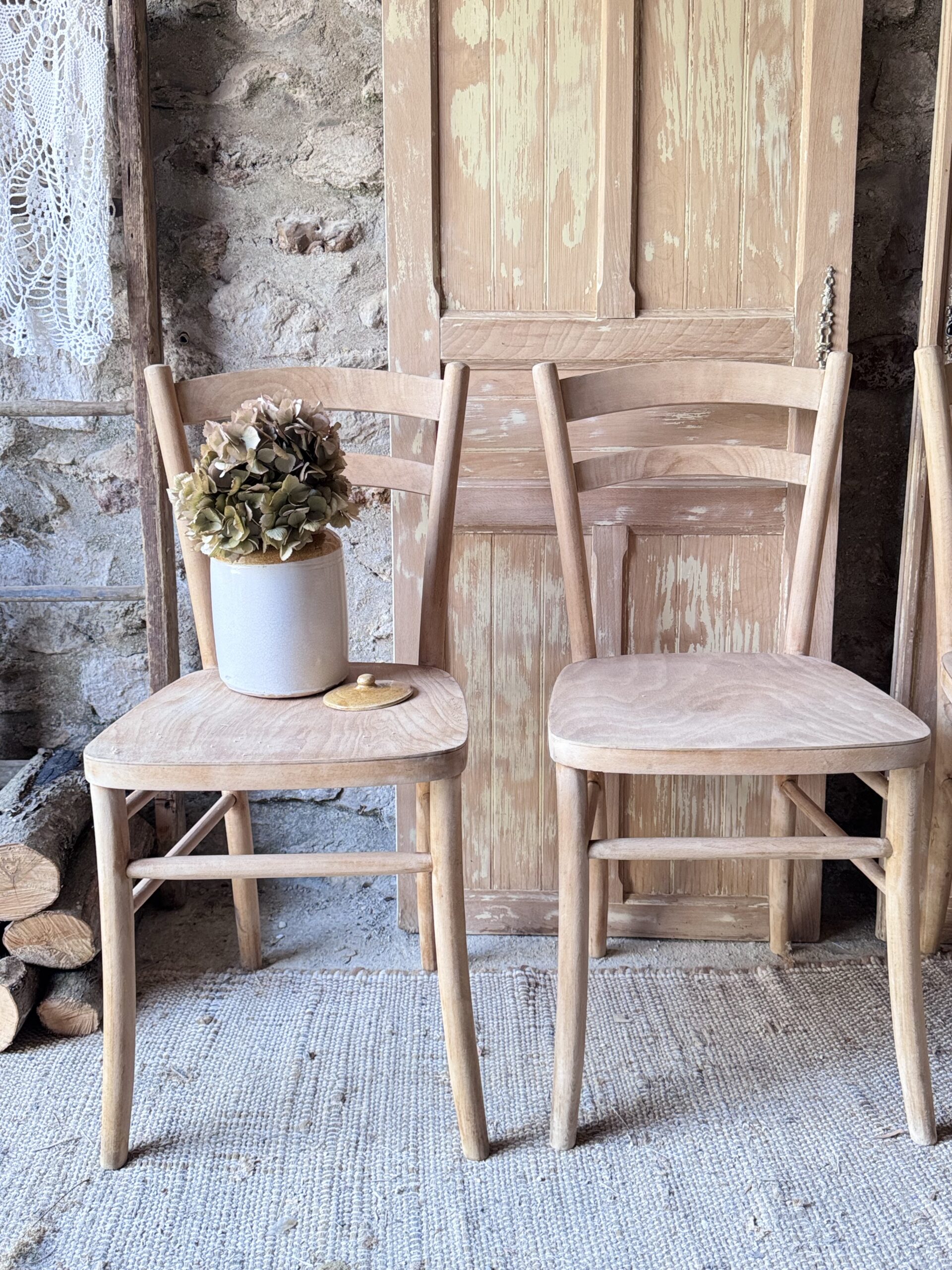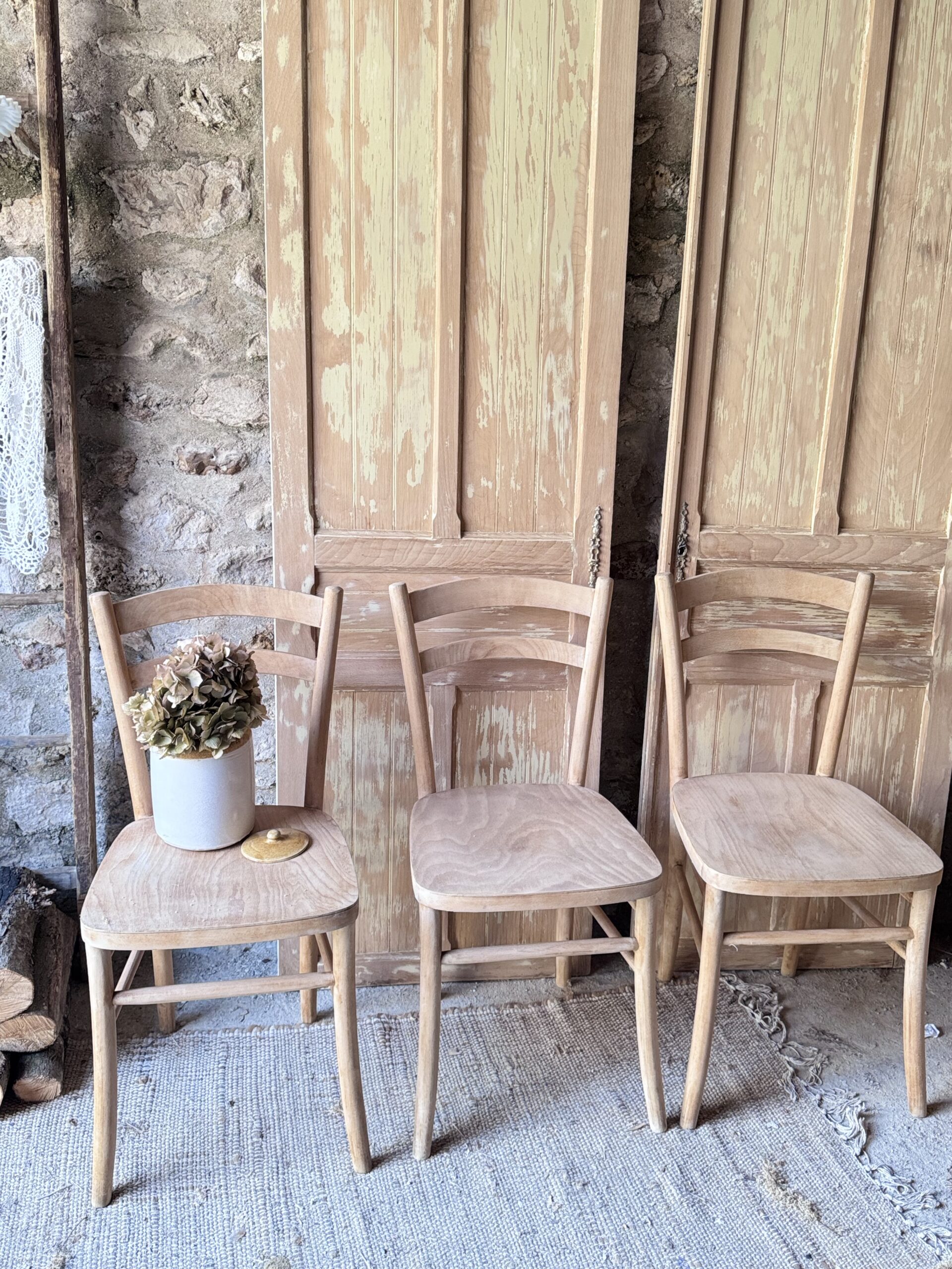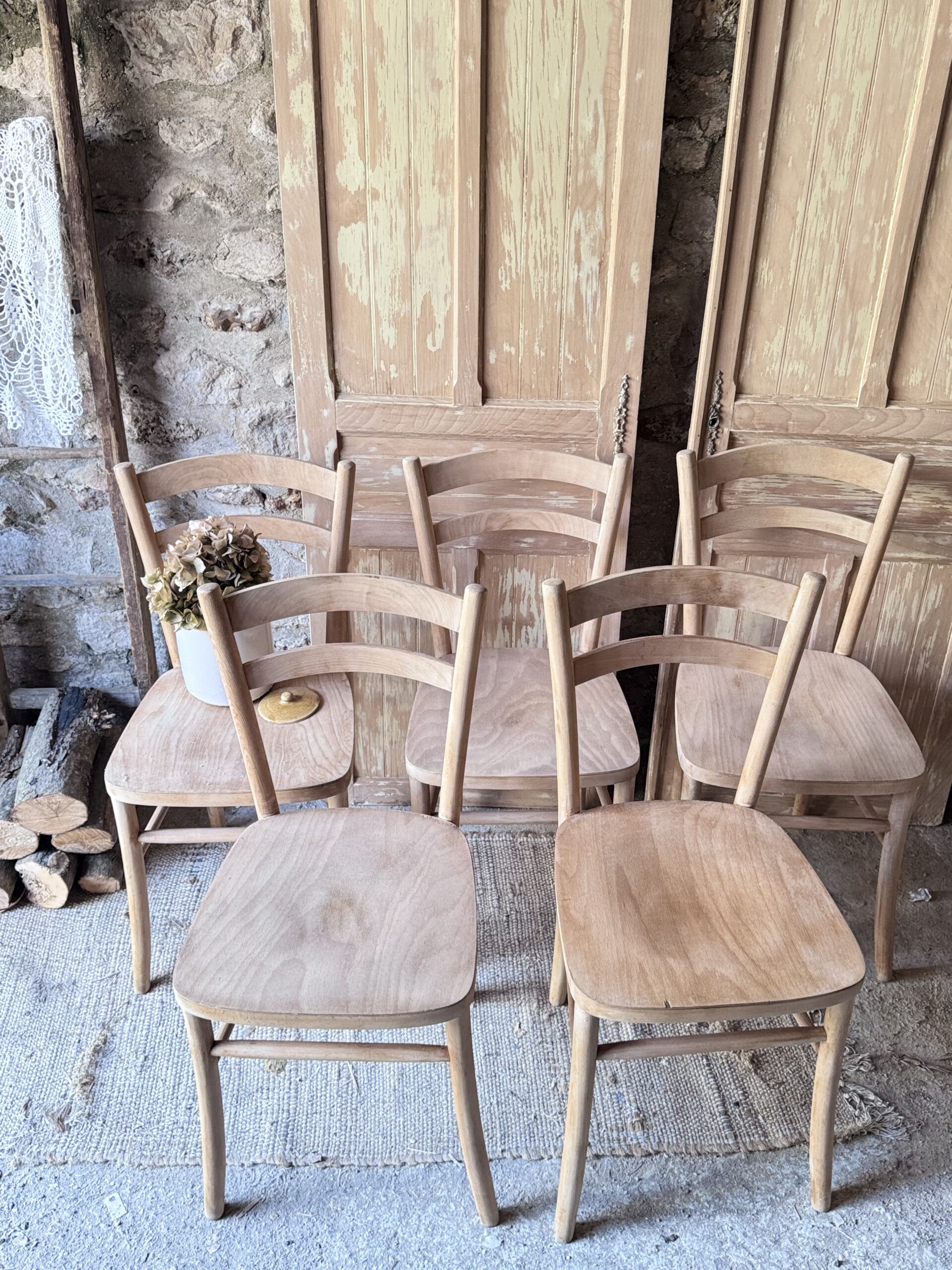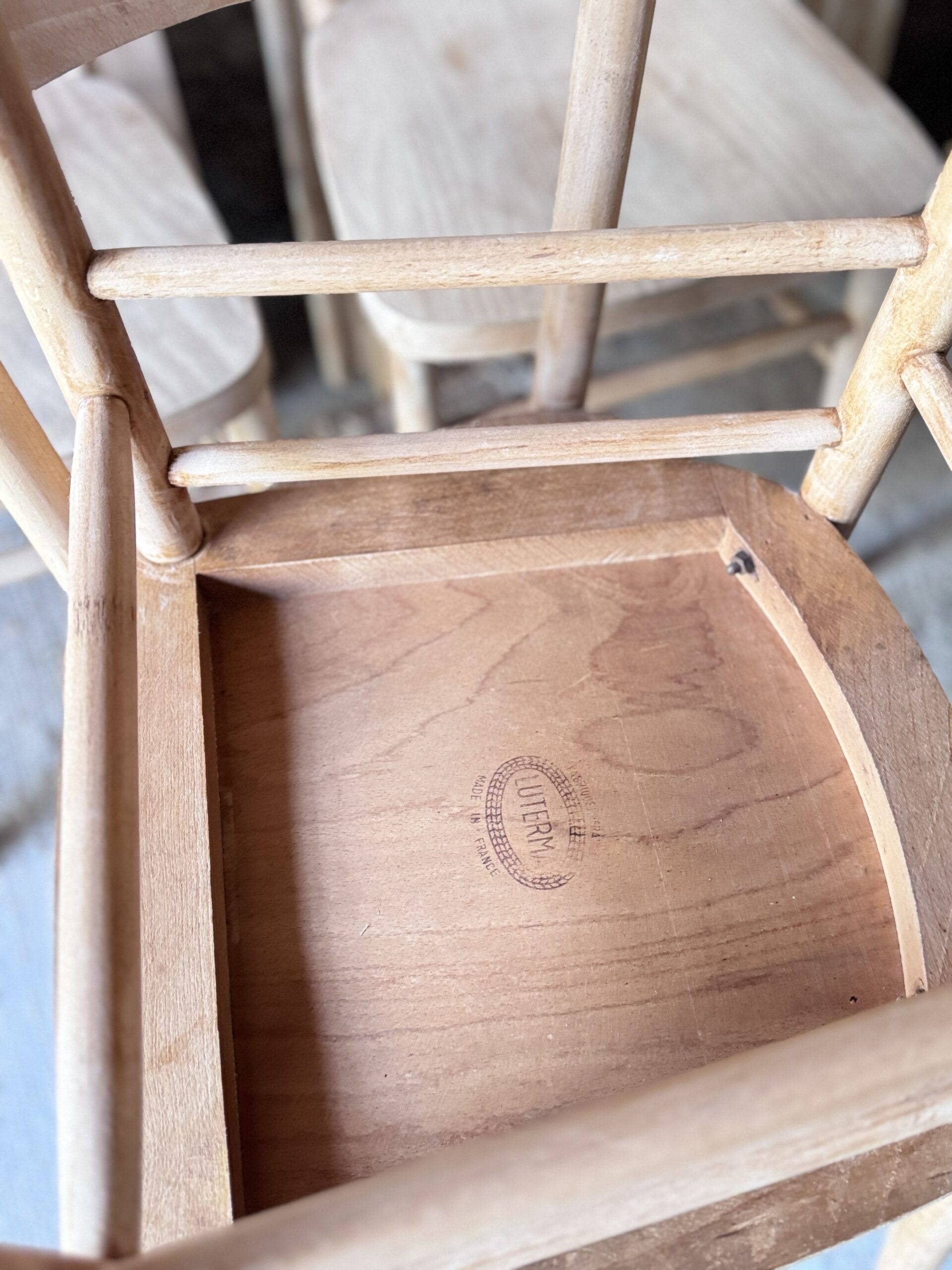 Lot de 5 chaises Luterma en chêne massif brut des années 50 entièrement restaurée à l’atelier.